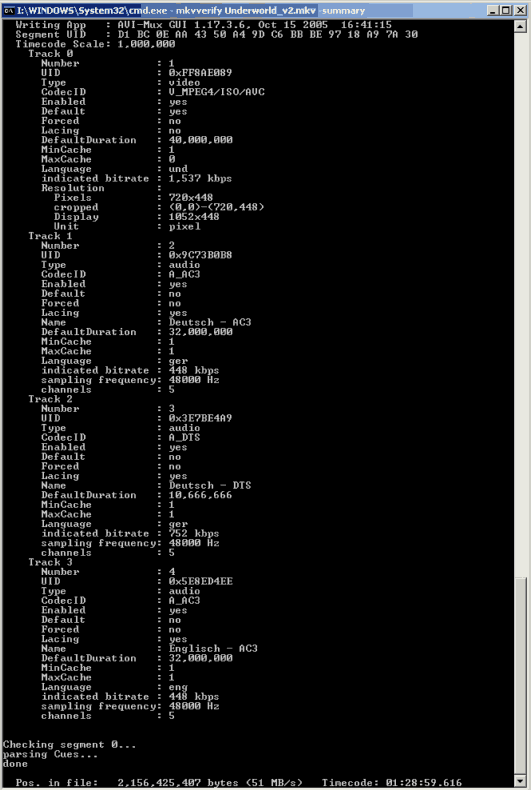 Example: mkvverify d:\movies\filename.mkv -fullcheck